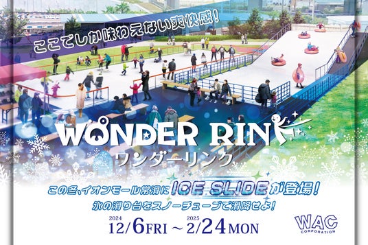 親子・子供のためのイベント企画運営会社の株式会社ワック(本社所在地:東京都品川区、代表取締役社長:栗橋 寿)は、イオンモール常滑内にある「ワンダーフォレストきゅりお」にて、2024/12/6(金)から2025/2/24(月)の間、屋外アイススケートリンク「WONDER RINK」を開催いたします。今年は例年のアイススケートリンクに加え、氷の滑り台「ICE SLIDE」も併設され、例年にはなかった感動を皆さんにお届けします!