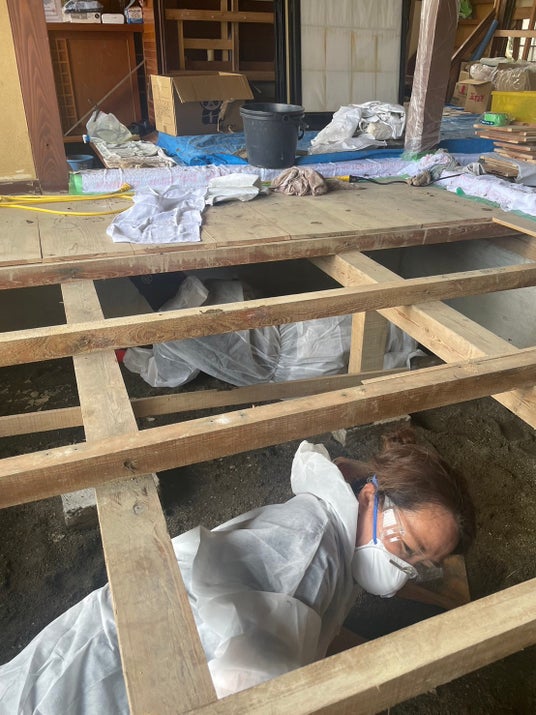 土石流が流れ込んだ家の泥のかき出し・拭き上げ作業1.