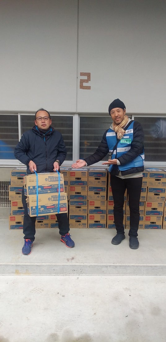 能登半島の先端地域、珠洲市の体育館に水1200本分が届いた時の報告写真