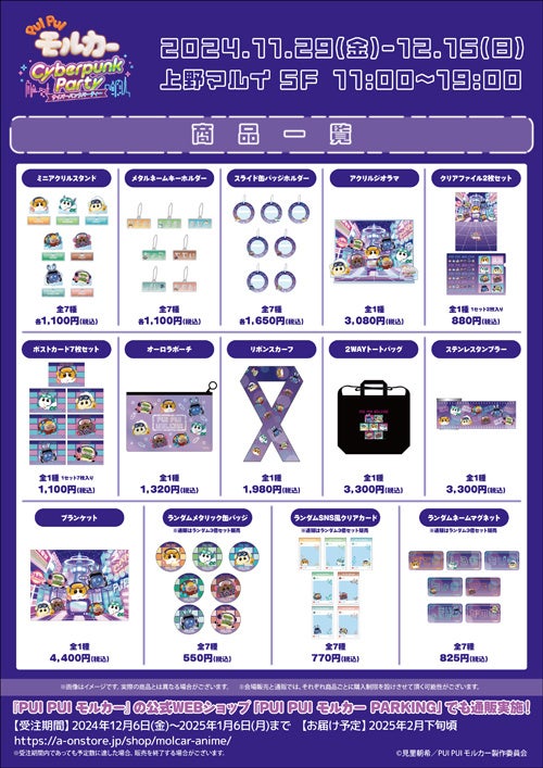 株式会社バンダイナムコフィルムワークスは、大人気ストップモーションアニメ『PUI PUI モルカー』のグッズ販売を行うポップアップストア“「PUI PUI モルカー サイバーパンクパーティー」-モルカーPARKING出張店-”を、上野マルイ5階にて、2024年11月29日(金)より12月15日(日)まで期間限定で開催いたします。