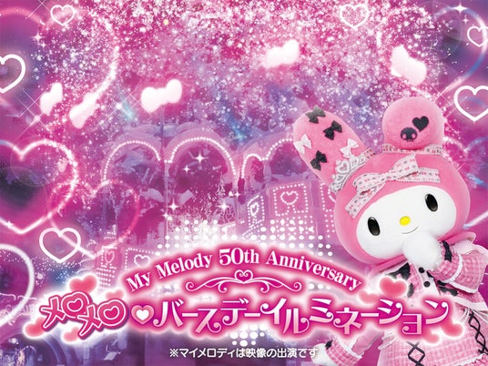 1月18日に迎えるマイメロディの誕生日にあわせ、2025年1月17日(金)~3月31日(月)まで「My Melody 50th Anniversary メロメロ(ハート)バースデーイルミネーション」を上演。さらに、同期間のピューロランドのクローズアナウンスをマイメロディが担当する他、バースデーグリーティングの実施や、限定のグッズ・フードの販売などを予定しています。
