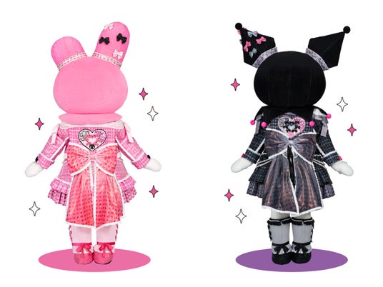 「おそろいバースデー」をイメージしたキュートでクールなおそろいの新コスチュームが登場します。マイメロディはピンク、クロミは黒を基調とし、ワンポイントとしてお互いのカラーのリボンがちりばめられています。ティアラや編み上げデザインなど、ふたりのおそろいポイントもぜひ探してみてくださいね。