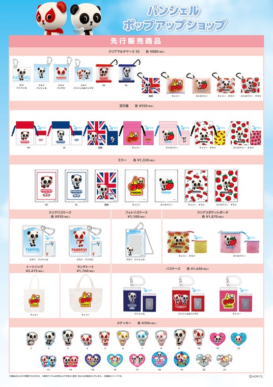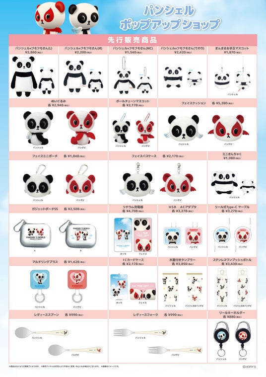 「パンシェル」や「パンデビ」のキュートなぬいぐるみや、普段使いに便利なアイテムを豊富に取り揃えました。