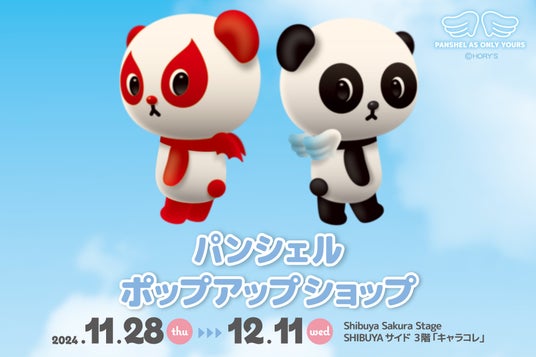 株式会社マリモクラフト(本社:東京都江東区)は「Shibuya Sakura Stage(渋谷サクラステージ)」内の「キャラコレ」にて、90年代に原宿を中心に人気を博したキャラクター「パンシェル」の期間限定ショップ『パンシェル ポップアップショップ』を2024年11月28日(木)から12月11日(水)まで開催いたします。パンダの天使のおとこのこ「パンシェル」や「パンデビ」のキュートでポップなアイテムを種類豊富に取り揃えました。懐かしくて新しい「PANSHEL'S WORLD(パンシェルズワールド)」の魅力あふれるグッズをぜひ会場でお手に取ってご覧ください。