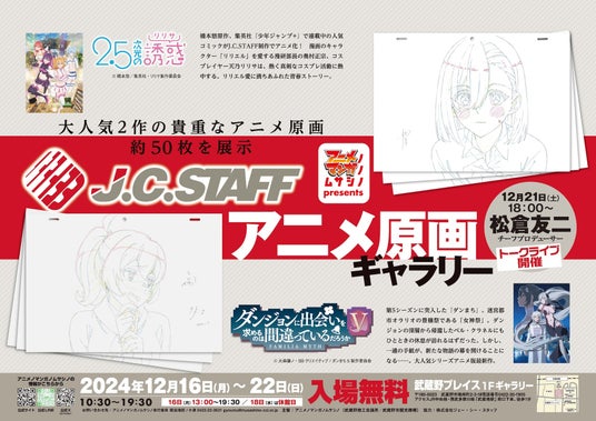 12月16日より、東京都武蔵野市の地域振興プロジェクト「アニメノマンガノムサシノ(武蔵野商工会議所/武蔵野市観光機構)」は、日本のアニメーション制作スタジオの雄「J.C.STAFF」のアニメ原画ギャラリーを東京都武蔵野市、武蔵境駅南口徒歩1分の複合機能施設「武蔵野プレイス」の1Fギャラリーにて開催します。