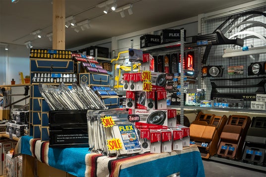 パーツショップには、FLEXオリジナルパーツをはじめ、各種メーカー品など、ハイエース専用のカスタムパーツを豊富に在庫。その場であれこれ比較していただきやすくなっており、