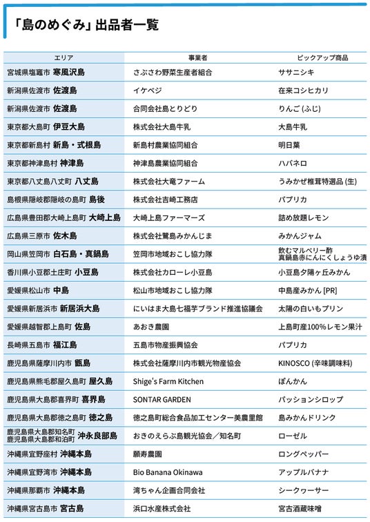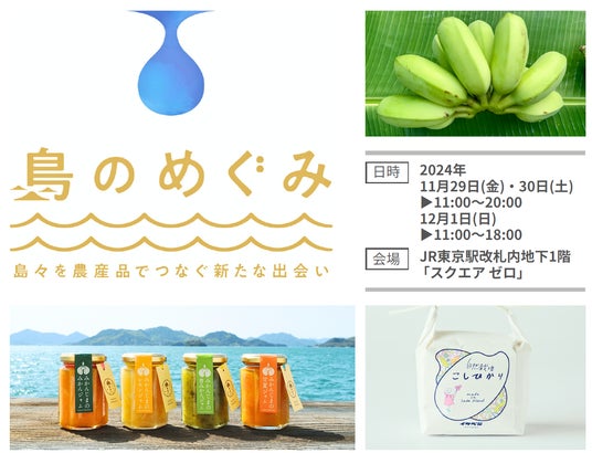 全国の離島連携に取り組む一般社団法人離島百貨店 (事務局:東京都千代田区/代表理事:青山富寿生、以下 「離島百貨店」) は、2024年11月29日(金)・30日(土)・12月1日(日)の3日間、JR東京駅改札内地下1階 「スクエア ゼロ」 にて、全国の離島の農産品および畜産加工品を集めた販売会 「島のめぐみ」を開催いたします。