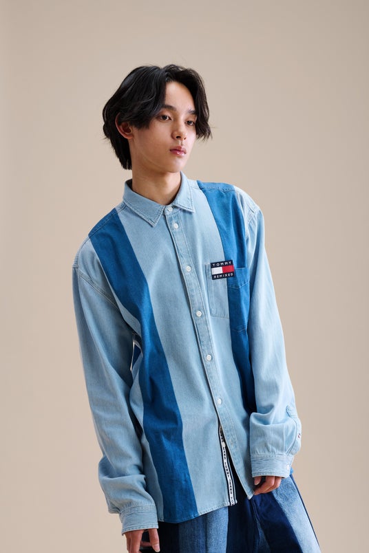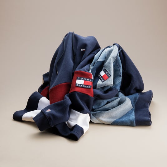革新的な生産技術により、「TOMMY REMIXED」はストリートウェア業界の新たな試みであり、新しいユニークなシルエットにジェンダーインクルーシブなスタイルを加えています。トミー ヒルフィガー消費者からの引き取りプログラムより集められたトミー ヒルフィガーとトミー ジーンズの商品と、修理不可能なダメージ商品から手作業で作られた一点ものの商品が揃います。