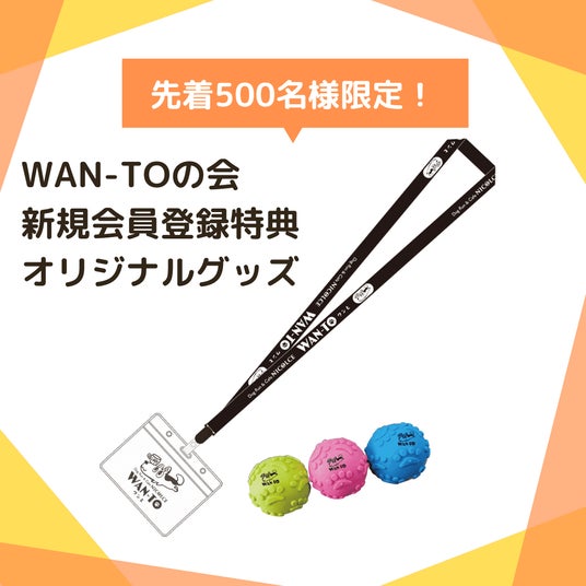 「WAN-TOの会」新規会員登録の特典として先着500名様にWAN-TOオリジナルグッズ「会員証ケース&ストラップ」と「カラーボール(お好きな色をおひとつ)」をプレゼント。