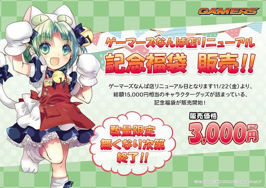数量限定!ゲーマーズなんば店リニューアル日11/22(金)より、総額15,000円相当のキャラクターグッズが詰まっている、記念福袋が販売されます!