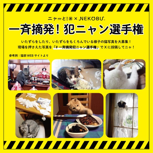 いたずらをしたり、いたずらをもくろんでいる様子の猫の写真を募集します。自宅で「犯ニャン」が発生した現場を押さえた写真を、SNSに投稿してください。