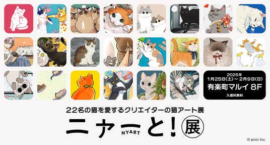 ピクシブ株式会社(本社:東京都渋谷区、代表取締役CEO:丹羽 康弘)は、22名のクリエイターが描く「猫/猫と私/猫の日常」をテーマにした作品を展示するイベント「ニャーと!展」を2025年1月25日(土)より有楽町マルイにて開催します。