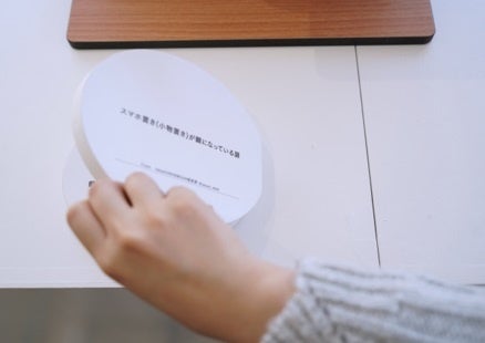 展示会場の天井に集まったお礼の数々を吊るして展示します。吹き出し形式で「スーパーやコンビニに子供用の小さな買い物カゴを設置してくれた人」「トイレにサニタリーセットを置いてくれているお店ありがとう」といったお礼エピソードをイラストと共に掲出します。