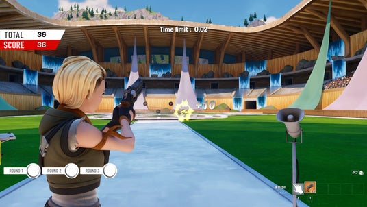 5つの的を制限時間内に狙撃して、3回のチャレンジの合計スコアを競うライフル射撃競技。 早く正確に的へ当てるエイム力が試されます。