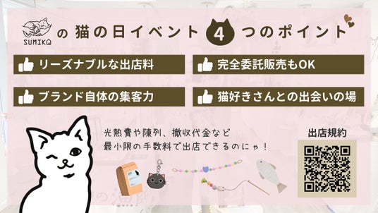 猫好きさんが最も熱狂する「猫の日」を含む4日間に渡り、私たちSUMIKAと一緒にイベントを創り上げてくださる出店者様を大募集いたします!