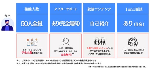 またイベント終了後のアフターサポートについては、参加した学生のうち、完全無料で高評価学生への動員架電を行います。