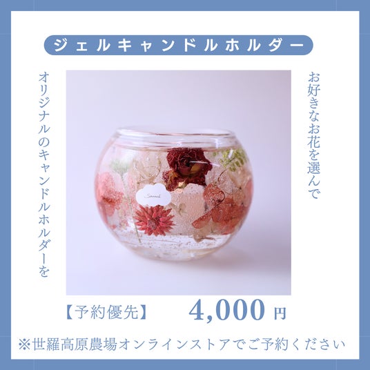 お花などの好きなアイテムを選んで入れ、固めてつくるジェルキャンドルホルダーづくりです。