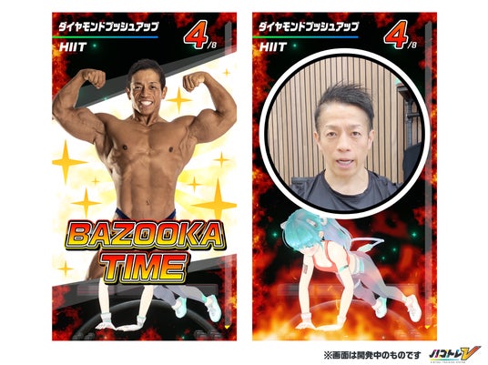 本コラボレーションでは、バズーカ岡田がプレイヤーのトレーニングを全力で応援する「バズーカ岡田追い込み機能 BAZOOKA TIME」を共同開発。さらにバズーカ岡田監修・開発のプロテイン『BAZOOKA NUTRITION』がゲーム内の3D空間に登場し「トレーニング後にVTuberとプロテインで乾杯する」スペシャルな記念写真が撮影できるようになりました。