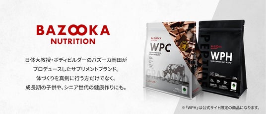 日本体育大学教授・ボディビルダーのバズーカ岡田(岡田隆)が開発・監修・プロデュースするサプリメントブランド。体づくりを真剣に行う方だけでなく、成長期の子供や、シニア世代の健康作りにもおすすめの人工甘味料不使用、グラスフェッド乳(2024年11月現在、ニュージーランド製造)を原料としたサプリメントを国内製造。