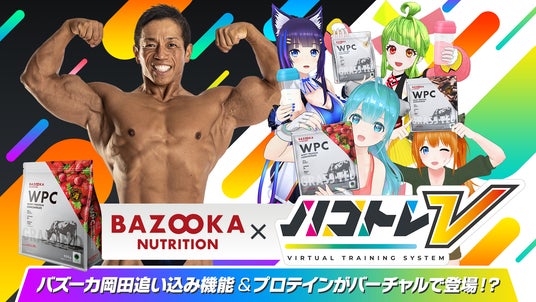 ボディビルダー・バズーカ岡田開発プロテイン「BAZOOKA NUTRITION」とVTuber筋トレゲーム「ハコトレV」コラボ決定!