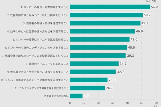 管理職の仕事で難しいと思っていること「メンバーの育成・能力開発をすること」が1位
