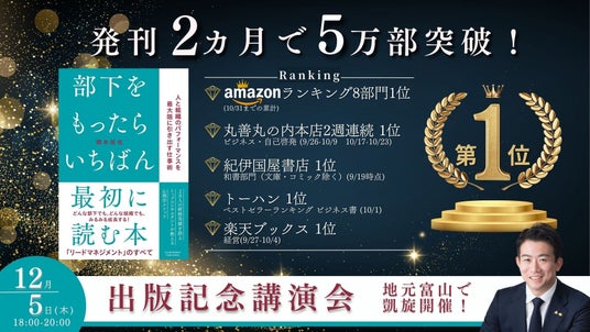 アチーブメント株式会社(本社:東京都江東区)は、2024年12月5日(木)に「部下をもったらいちばん最初に読む本」の出版記念講演会を著者の地元である富山県で開催いたします。本書は、マネジメントの悩みを抱える全てのリーダーに向けて、心理学に基づく新しいマネジメント手法「リードマネジメント」を紹介しており、出版記念講演会では、書籍では語り尽くせ無かった具体的なマネジメントの事例や手法も具体的にお伝えいたします。
