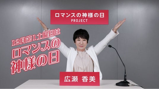 音楽ビジネスの総合プロデュース、及び音楽プロジェクトの開発・実行を行う Muse Endeavor株式会社(所在地:東京都港区高輪2-14-23 代表:米光 貴久江)は、本日2024年11月25日に、マネジメント業務をはじめ総合的に活動を支援する音楽アーティスト広瀬香美の楽曲「ロマンスの神様」が、一般社団法人 日本記念日協会より12月第1土曜日が『ロマンスの神様の日』として記念日に認定されたことを発表した。