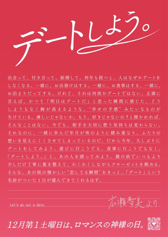記念すべき第1回目となる2024年12月7日の「ロマンスの神様の日」のテーマは、「デートしよう。」。