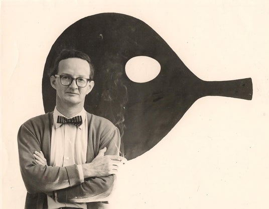 「H55」展のため告知をするスティグ・リンドベリ、1955 年 (C)️Stig Lindberg/Bus