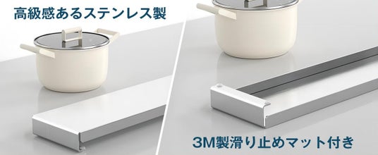耐荷重20kgを実現した改良版。奥行き10cmのデザインで、調味料や鍋を置いてラックとしても活用できます。