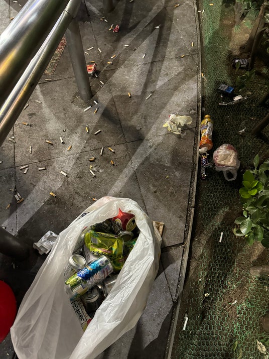 ポイ捨ての状況、大量のタバコや空き缶