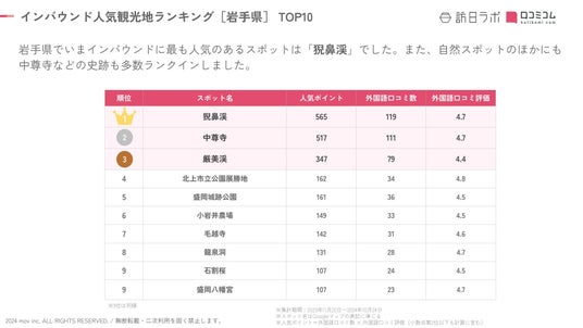 【独自調査】2024年最新:外国人に人気の観光スポットランキング[岩手県編]1位は「猊鼻渓」!| インバウンド人気観光地ランキング #インバウンド #MEO