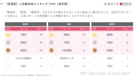- 調査対象:訪日ラボが独自に選出した岩手県の観光スポット 1,779箇所