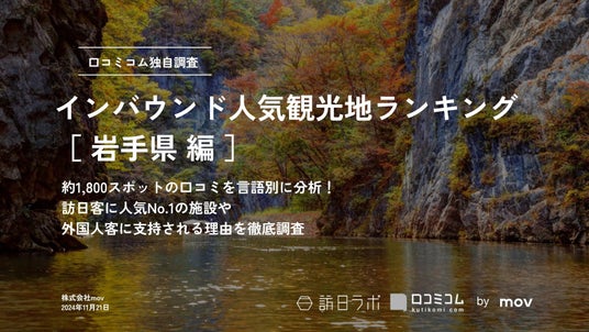 業界最大級のインバウンドビジネスメディア「訪日ラボ」及び 店舗向け集客一元化プラットフォーム「口コミコム」を運営する株式会社mov(代表取締役:渡邊 誠、本社:東京都渋谷区、以下mov)は、各都道府県の観光スポットに寄せられた最新の口コミデータから、独自の『インバウンド人気観光地ランキング』を発表しました。