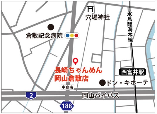 ■長崎ちゃんめん 岡山倉敷店住所 岡山県倉敷市中島2222-1