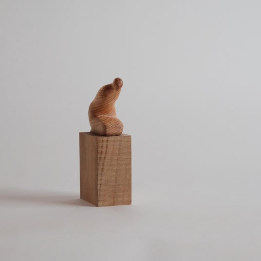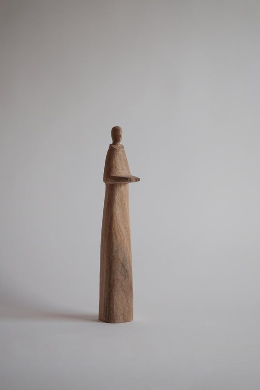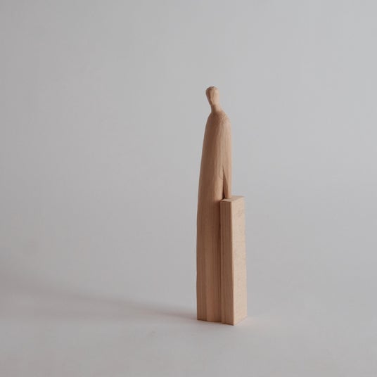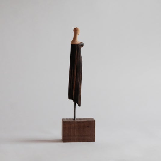 豊かな欠落ともいえる木によるミニマルなかたち。単純化された人や動物の姿に、視る者は“欠けている”細部だけではなく、この作品が過ごしたであろうこれまでの時間と、この先の人生を想像し、その人なりの詩や物語を重ねて作品を完成させていきます。ひとつの作品が完成される先は、視る者の心象の数だけあるかのようです。
