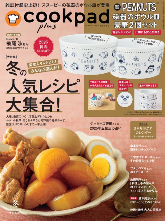 雑誌付録史上初!【スヌーピー】磁器のボウル皿が登場!『cookpad plus』2025年冬号が11月29日に発売されます