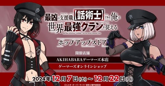 株式会社カードラボ ゲーマーズ(本社:東京都豊島区、https://www.gamers.co.jp/ 以下ゲーマーズ)は、2024年12月7日(土)より「TVアニメ 『最凶の支援職【話術士】である俺は世界最強クランを従える』」ポップアップストア を開催することをお知らせいたします。
