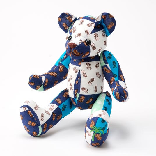 アロハシャツのプリント生地に使用した残布で作製したベア