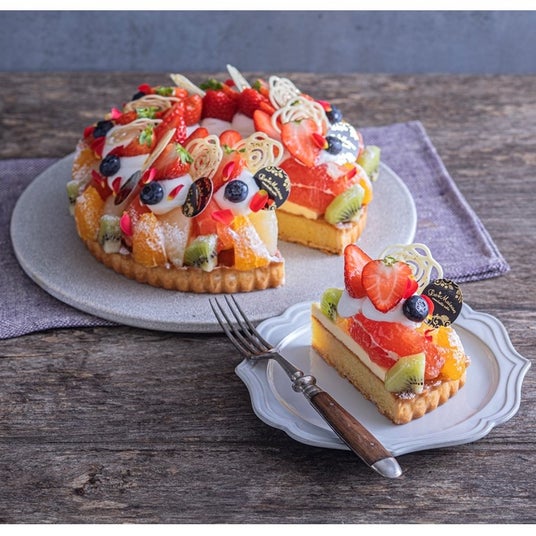 香ばしいアーモンドタルトにカスタードクリームを重ね、5種類のフルーツ、
