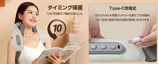 - 温熱機能付きでトータルケア温熱機能が首元をじんわり温め、血行促進をサポート。自宅で本格的なリラクゼーションが体験できます。