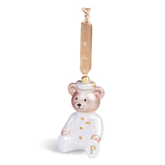 ザ・ペニンシュラ ページベアオーナメントフェスティブデコレーションに欠かせない、愛らしさ満点のペンベアオーナメント。フェスティブな喜びに満ちた笑顔と、アイコニックなページボーイの制服を着た姿が特徴です。ザ・ペニンシュラホテルズでの思い出を象徴する、特別なお土産としてぴったりのアイテムです。