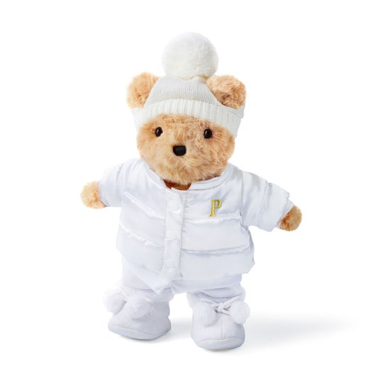 ザ・ペニンシュラ フェスティブベア今年限定、ふわふわの冬の装いで登場するペニンシュラベア。白いスノーウエアに身を包んだ、おしゃれで温かい抱き心地がたまらないベアは、かわいいギフトに最適です。