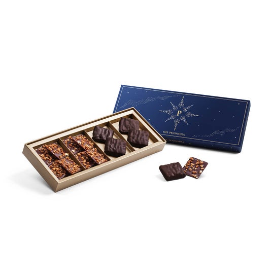 ザ・ペニンシュラ ブティックのフェスティブ チョコレート セレクションが、クリスマスに魔法のような煌めきを演出します。様々な味覚のチョコレートガナッシュがフランス産のクーベルチュールチョコレートに包まれ、この季節ならではの喜びと贅沢な煌めきのシンフォニーを奏でます