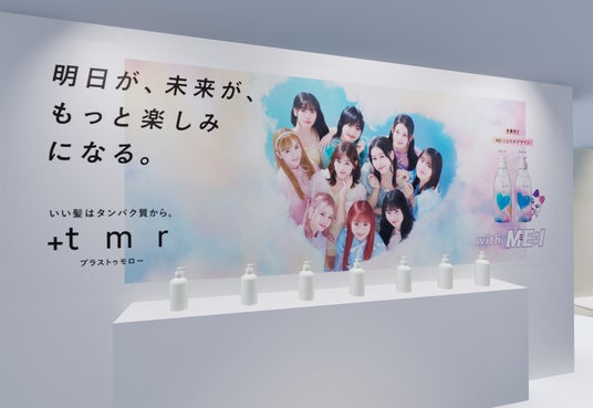 イベントのテーマは、「雲の上のワクワクが生まれる場所」。コラボデザインボトルに描かれているハートの雲間の入口を抜けた先に広がるのは「Tomorrow」の舞台である彩雲の世界。撮影で使用した美術品や小道具を使って、まるでメンバーの一員になったかのように、彩雲の世界で遊んでいる様子を撮れるフォトスポットや、「tmr playland」の入口、ハートの雲間を見上げている写真が撮れるフォトブースなど、足を踏み入れた瞬間から、「Tomorrow」の世界を満喫、ワクワクがあふれ出します。さらに、「+tmr」のタンパク質着目ケアを楽しく体感できるゲーム、コラボデザインボトルがもらえるコンテンツを通して、髪も気持ちも晴れやかになる後押しも。