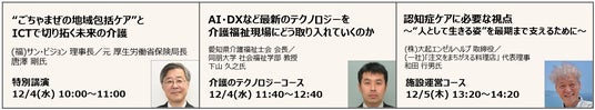 本展では、業界の第一線で活躍する専門家を講師に迎えた「専門セミナー」を同時開催する。特別講演では、元厚労省保険局長の唐澤剛氏が登壇。介護のテクノロジーコースでは、愛知県介護福祉士会 会長の下山久之氏が最新テクノロジーを現場に導入する際のポイントを解説。その他、稼働率アップや業務改善の具体策、次世代リーダー育成、日常の介護でとり入れたいフレイル予防など、介護の課題解決に役立つセミナーがラインナップされている。セミナー受講に必要な事前申込(無料) は公式サイトにて受付中。定員間近のセッションもあるため、早めの受講申込をおすすめする。