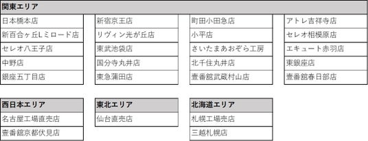 対象店舗:銀座店、二子玉川店、横浜店、名古屋店、大阪店