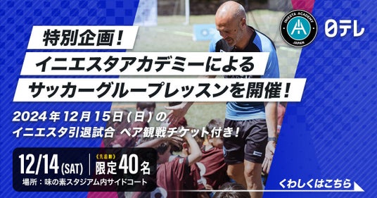 「イニエスタ引退試合」観戦チケット付き!日テレドリームコーチングがイニエスタアカデミーとサッカークリニック開催!