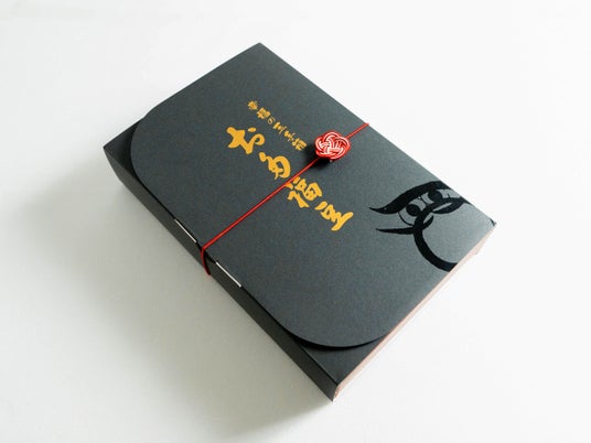 黒を基調とした上品な佇まいに、赤い花模様と水引の帯を添えることで、贈り物としての格式と和の趣を表現しています。パッケージの名前には、幸せを運ぶ玉手箱のように、お客様の手元へ届いた時から開けた後まで、喜びと共に楽しんでいただきたいという願いを込めました。