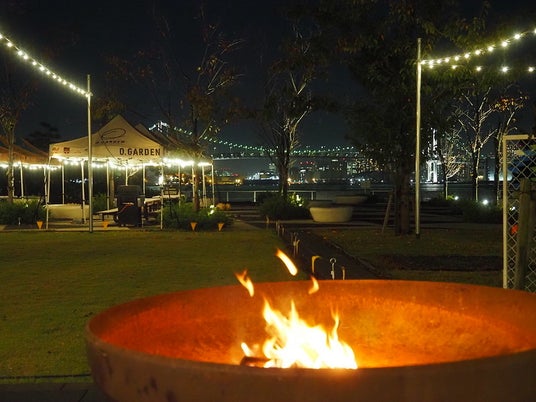 晴海ふ頭公園内にあるO.GARDENで焚火が楽しめます